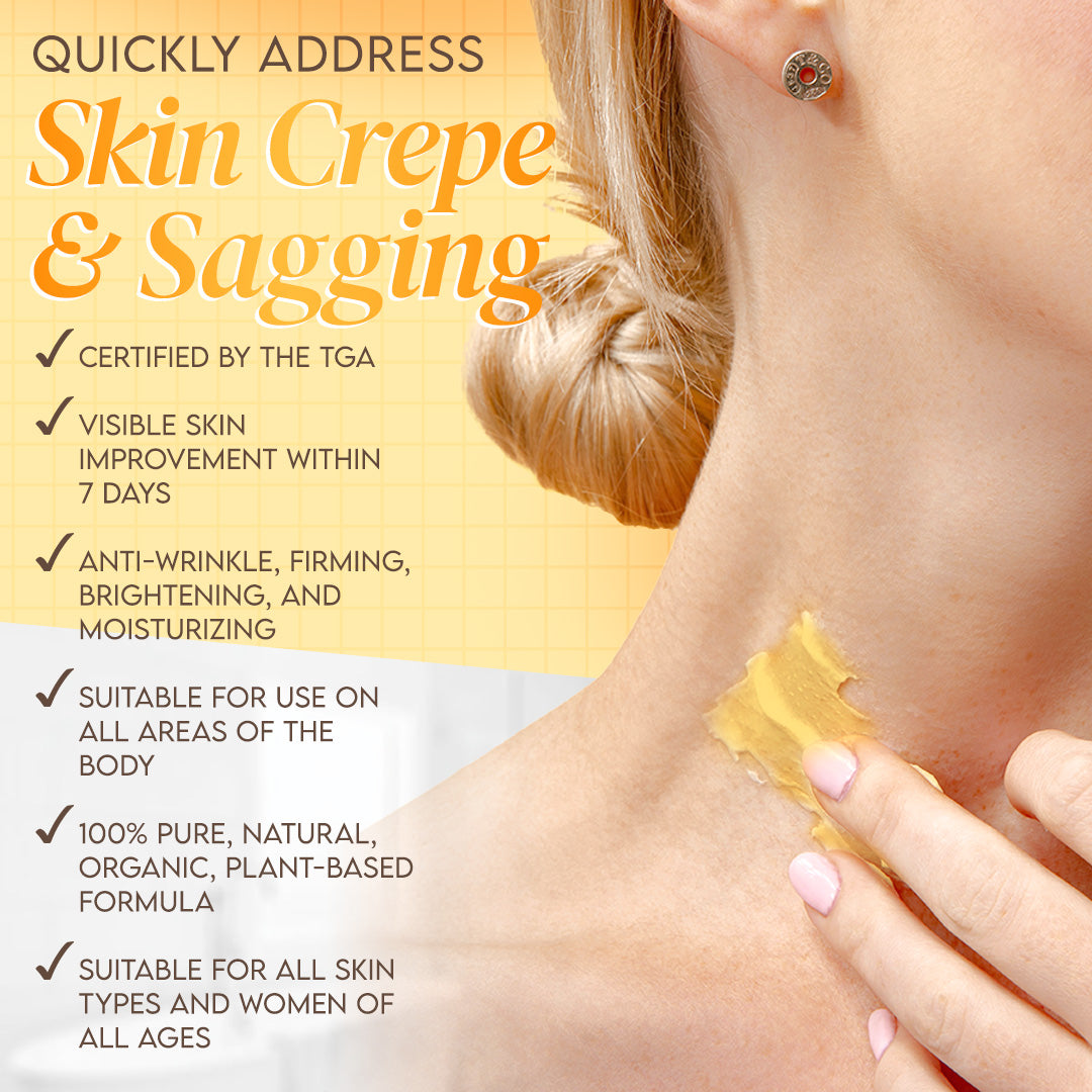 Formulated with 100% natural plant extracts and enriched with bee venom, this cream is designed to effectively target multiple skin concerns—from neck lines, sagging arms, drooping breasts, stretch marks, and cellulite to loose skin on the abdomen, thighs, and buttocks.